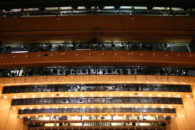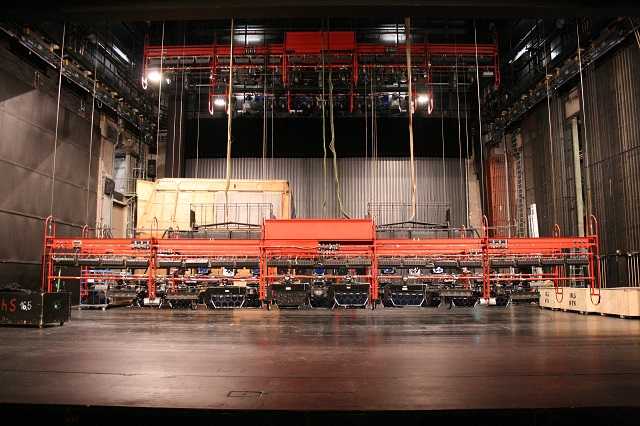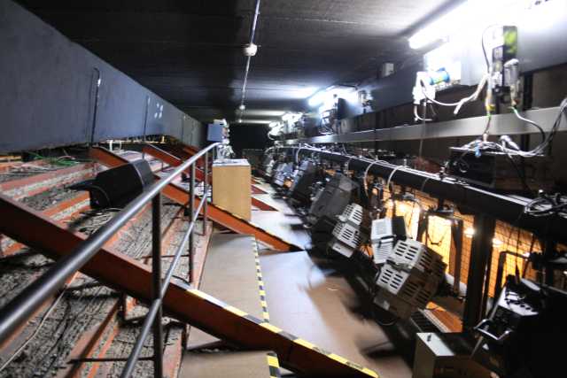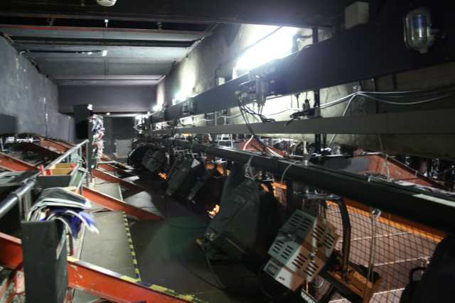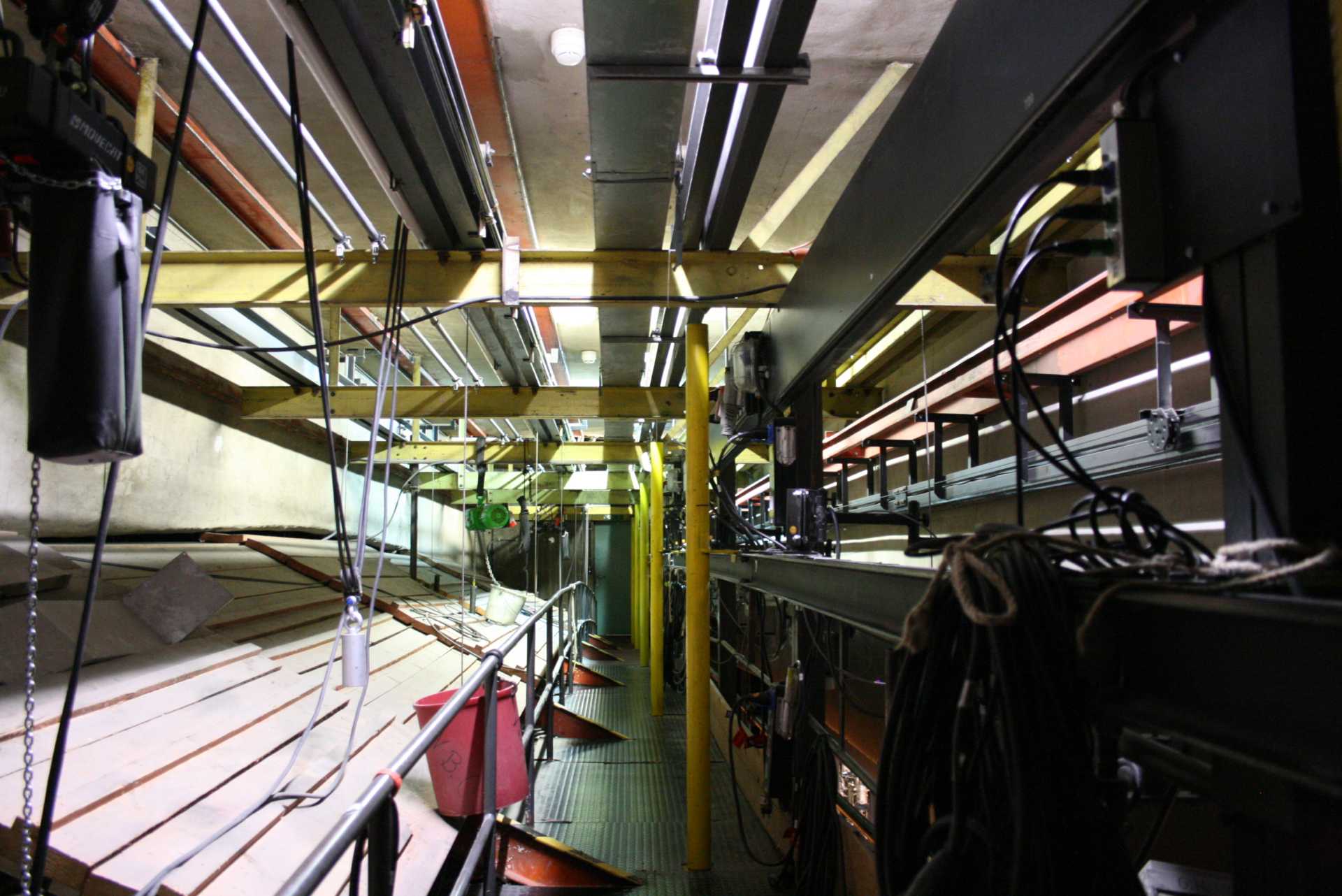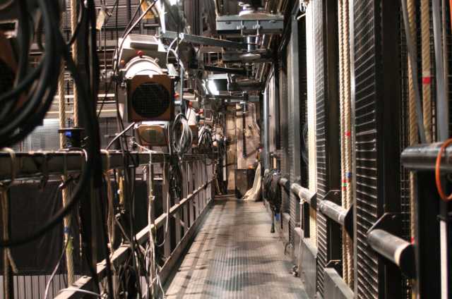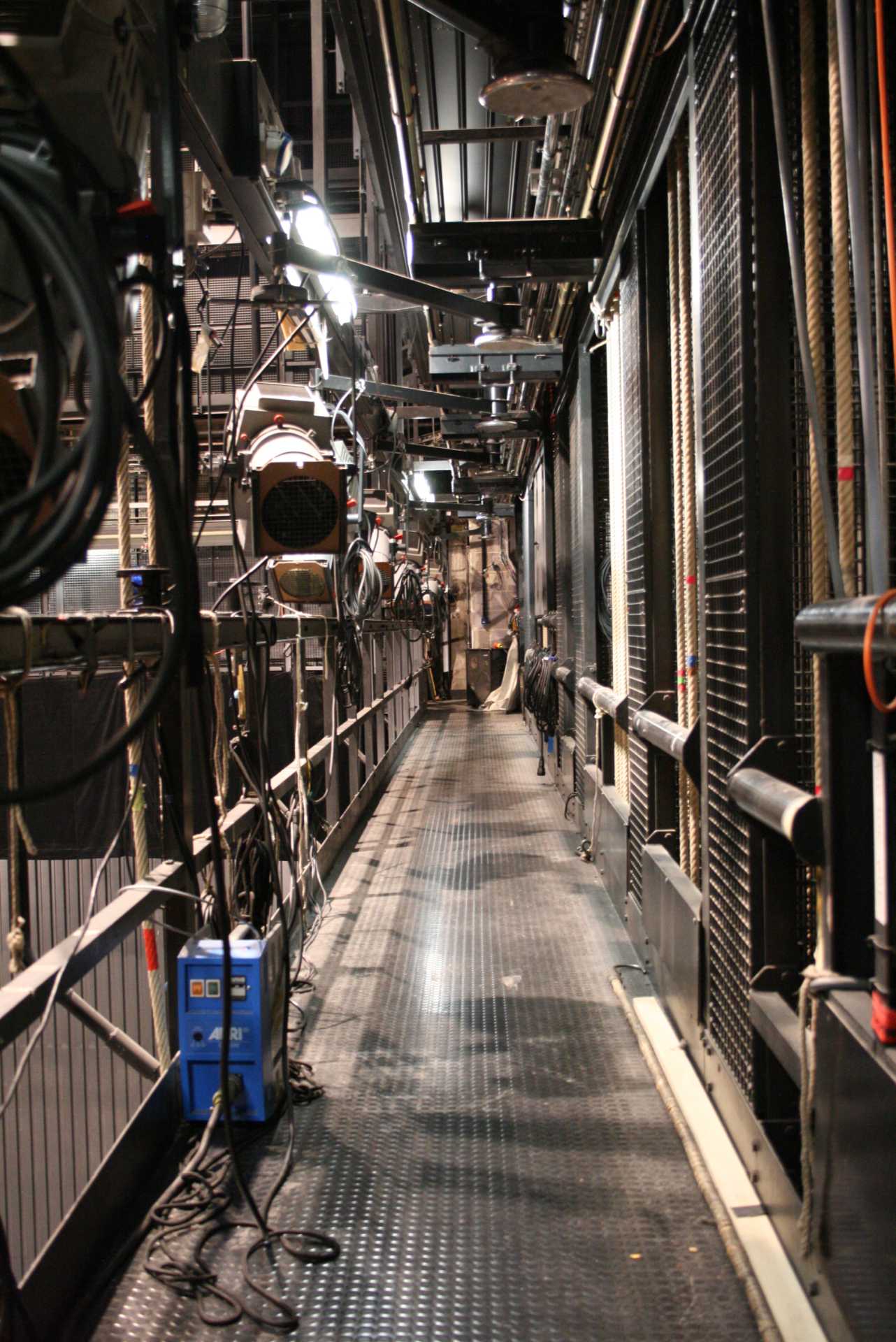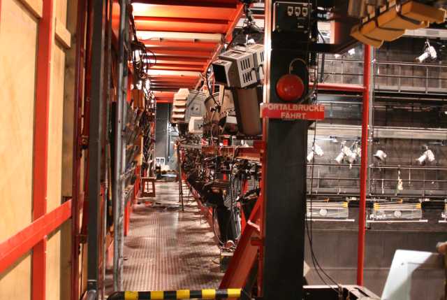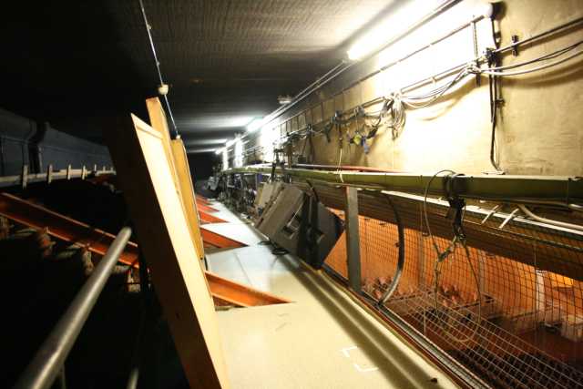 - jeweils links, rechts und hinten, unterhalb der Galerien, befinden sich 6 einzeln höhenverfahrbahre Teleskope/Teleclimber