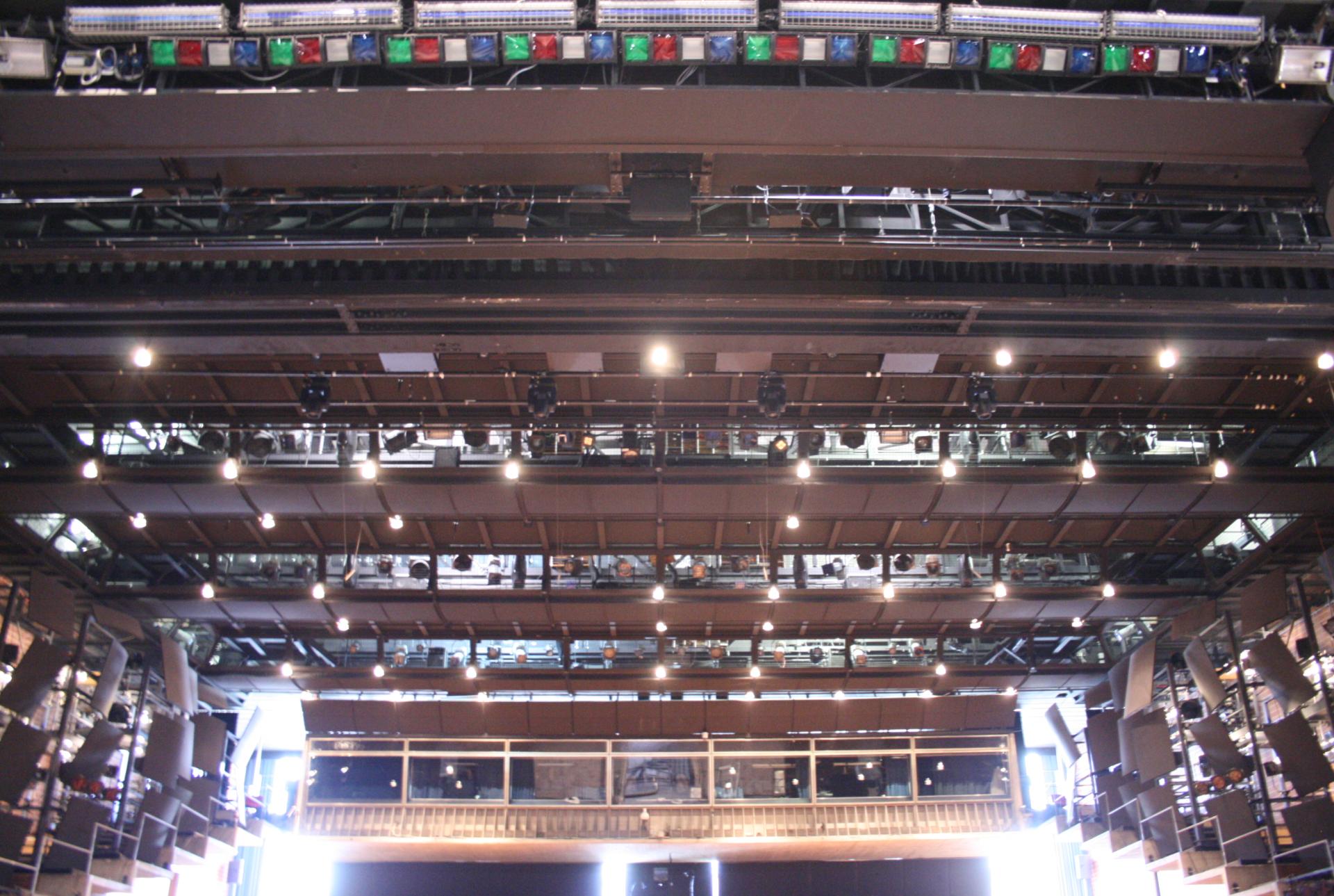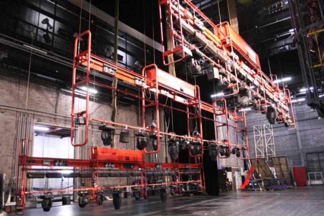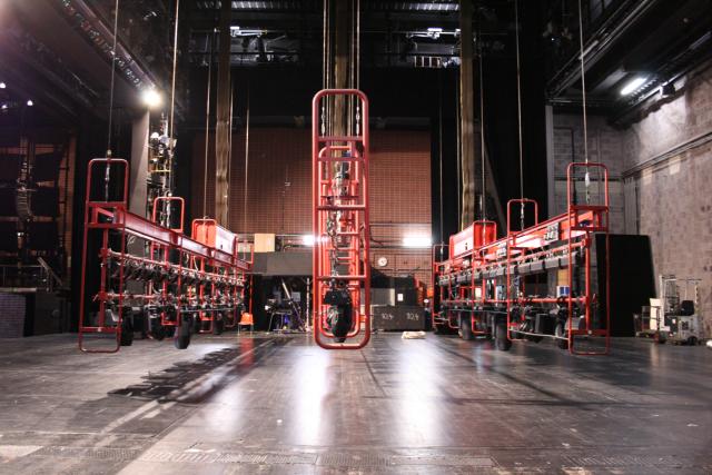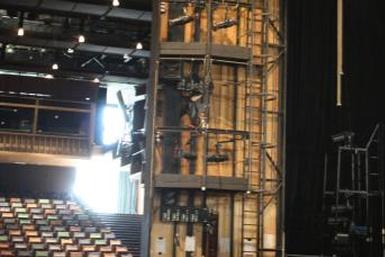 - 6 einzeln höhenverfahrbahre Teleclimber über gesamte Bühnenbreite